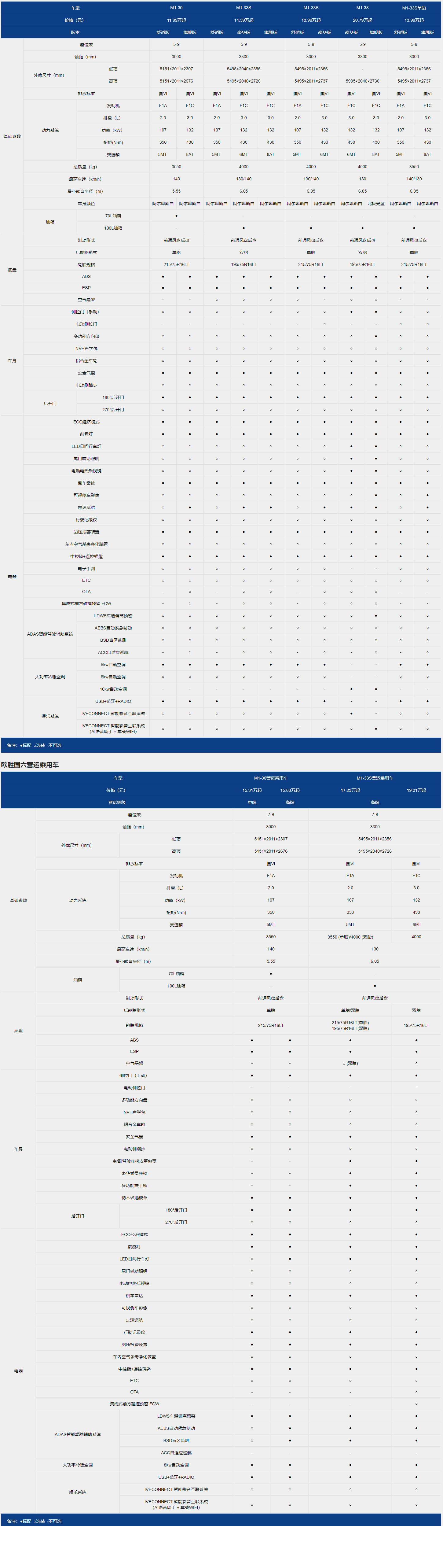 欧胜超瑞系列 参数配置表