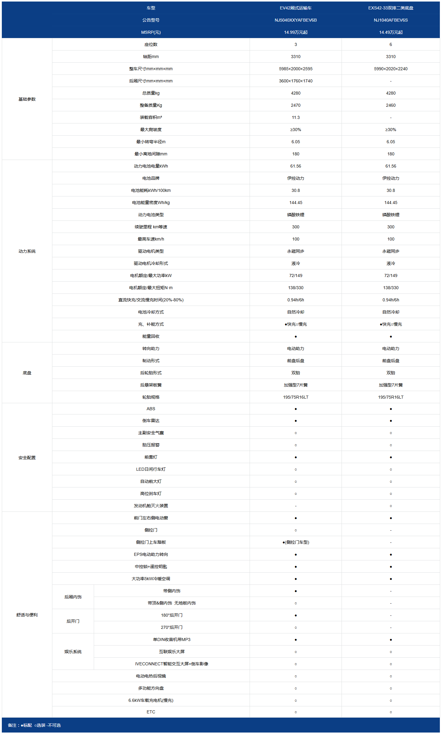 新能源车得意纯电动车 参数配置表