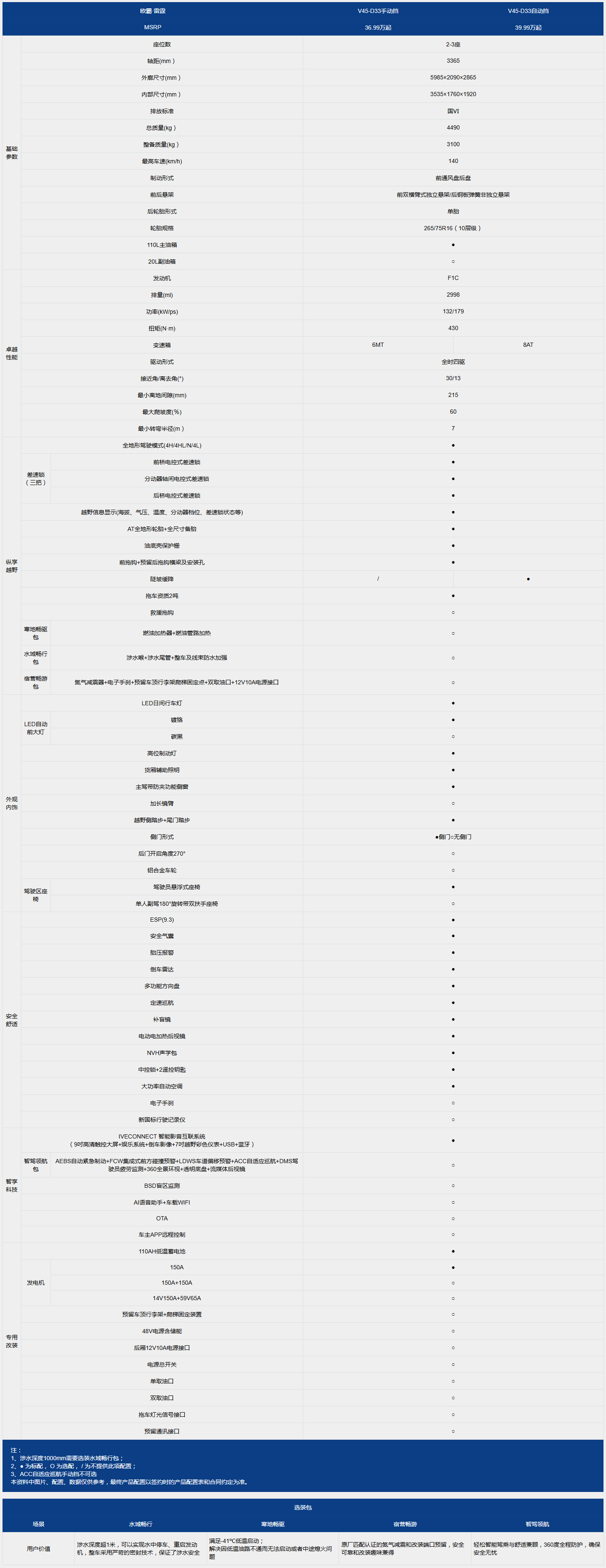 欧霸·山海/欧霸·雷霆厢式版专业越野平台 参数配置表