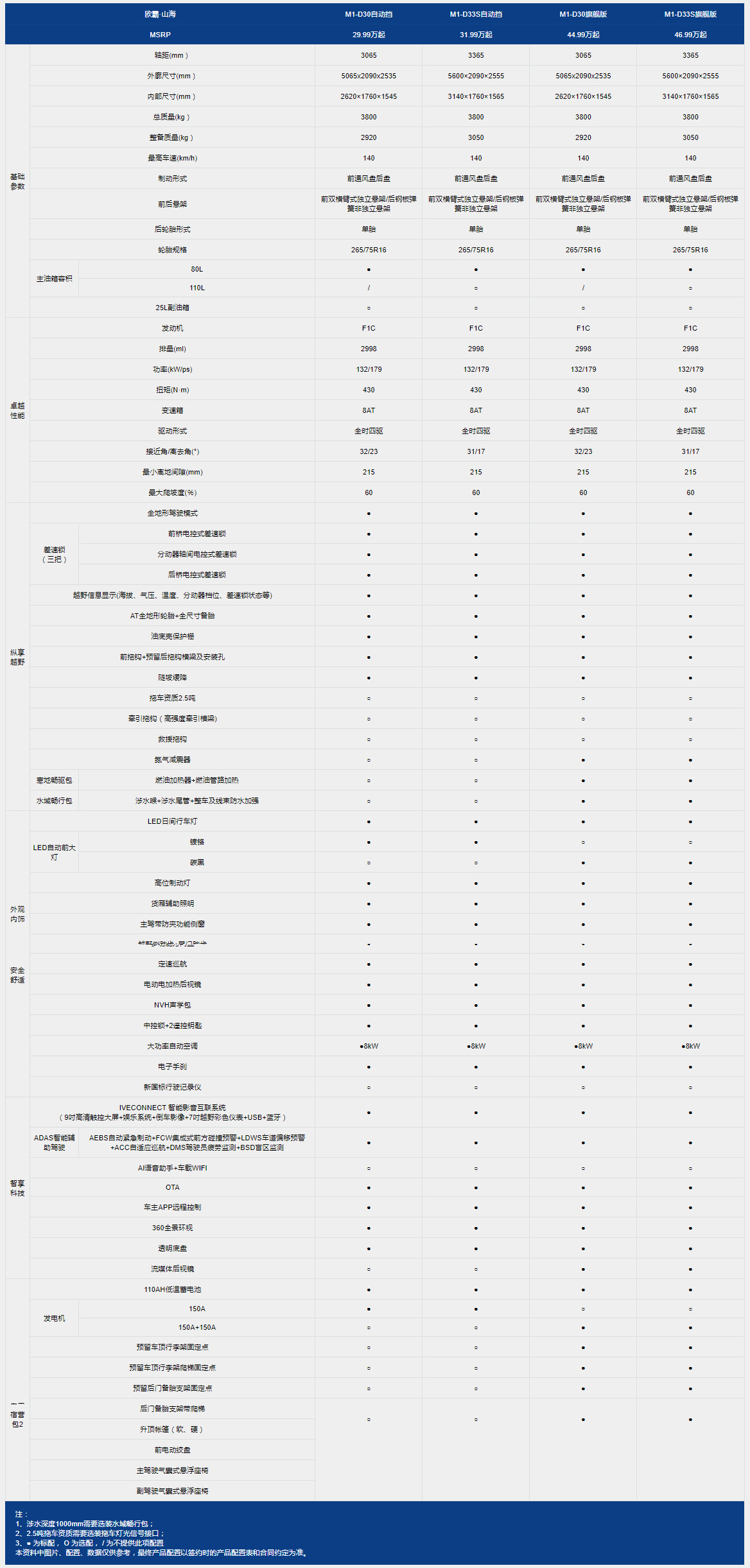 欧霸·山海/欧霸·雷霆乘用版专业越野平台 参数配置表